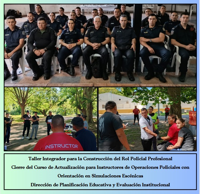•El equipo de trabajo de D.P.E. y E.I., en el marco del Taller Integrador para la Construcción del Rol Policial Profesional, llevó adelante en el asiento de la EPJV Central, el curso de actualización para instructores de Operaciones Policiales con orientación en simulaciones escénicas, con una duración de cuatro jornadas virtuales y 4 jornadas presenciales, destinado a los docentes de las EPJV del interior y del AMBA.