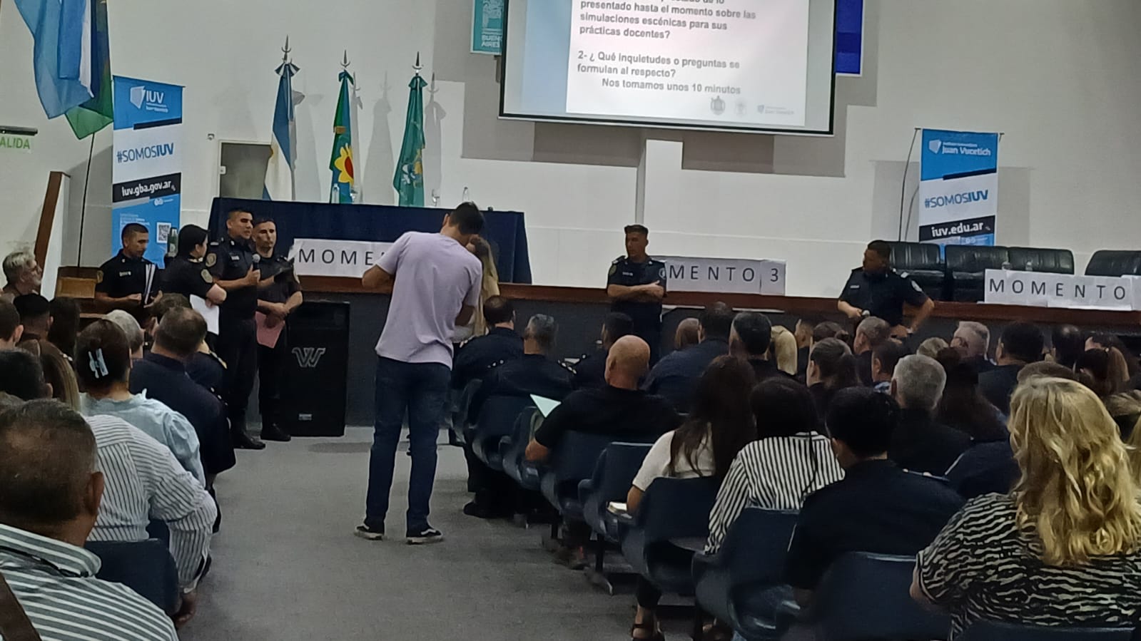 En la jornada se exhibió el trabajo docente desde la presentación de la clase hasta su cierre, incluyendo cada una de las etapas que componen una intervención simulada.. Destinada a los alumnos del Instituto Universitario Juan Vucetich (I.U.V.).